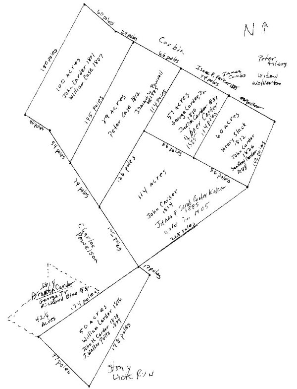 This 42 acres was in the possession of George Carder, Jr. when he died in